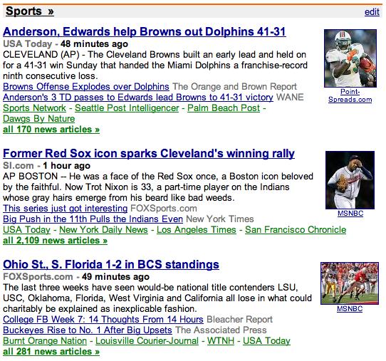 Yet, today was a good day. Looking at my Google News page, I scrolled down to the sports section, and look at this: